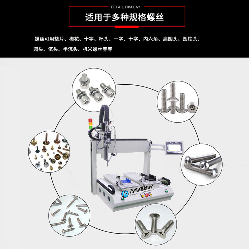 - 產品簡介: 雙平臺坐標式螺絲機取螺上螺系統可同時進行取螺、上螺,并自動完成鎖緊動作,自動化程度高,定位效果精度高,使用簡單、方便、快捷,大幅度提高生產效率。