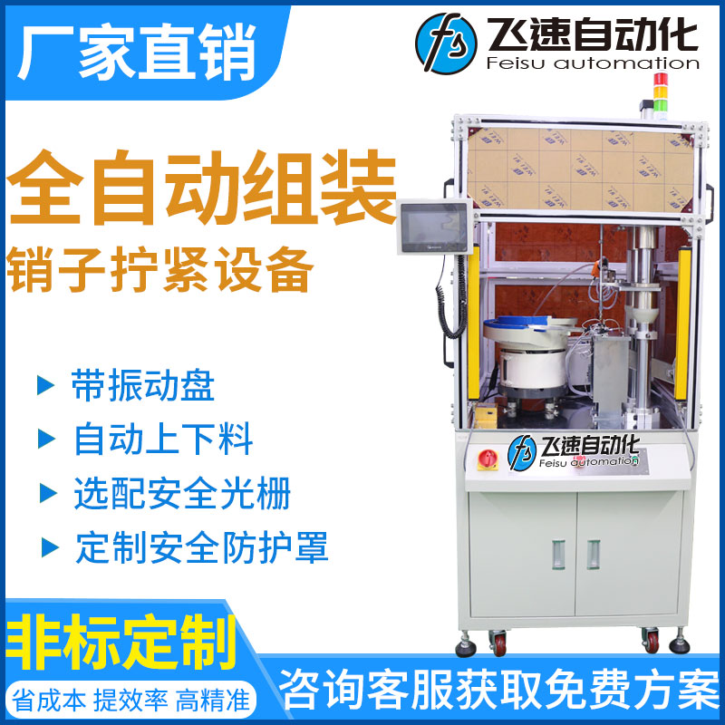 - 產品簡介: 此款全自動組裝壓緊端子機,是根據客戶產品實際結構和要求來設計的,PLC使用的是西門子品牌,可以計數良品與不良品,機器采用振動盤自動上料,并設置了自動落料裝置,應客戶要求,加了防護罩及安全光柵。全自動組裝壓緊機實現了螺絲的自動輸送、擰緊、檢測等工序,通過設備來簡化螺絲緊固工序,達到節省人工的目的。