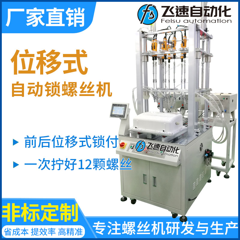 - 產品簡介: 本款產品是空調自動打螺絲機。在本案例中產品空調外殼體積大,螺絲多,人工打螺絲費時又費力,這里采用12軸前后位移式自動鎖螺絲機,生產效率迅速提升,可節省8-12人。