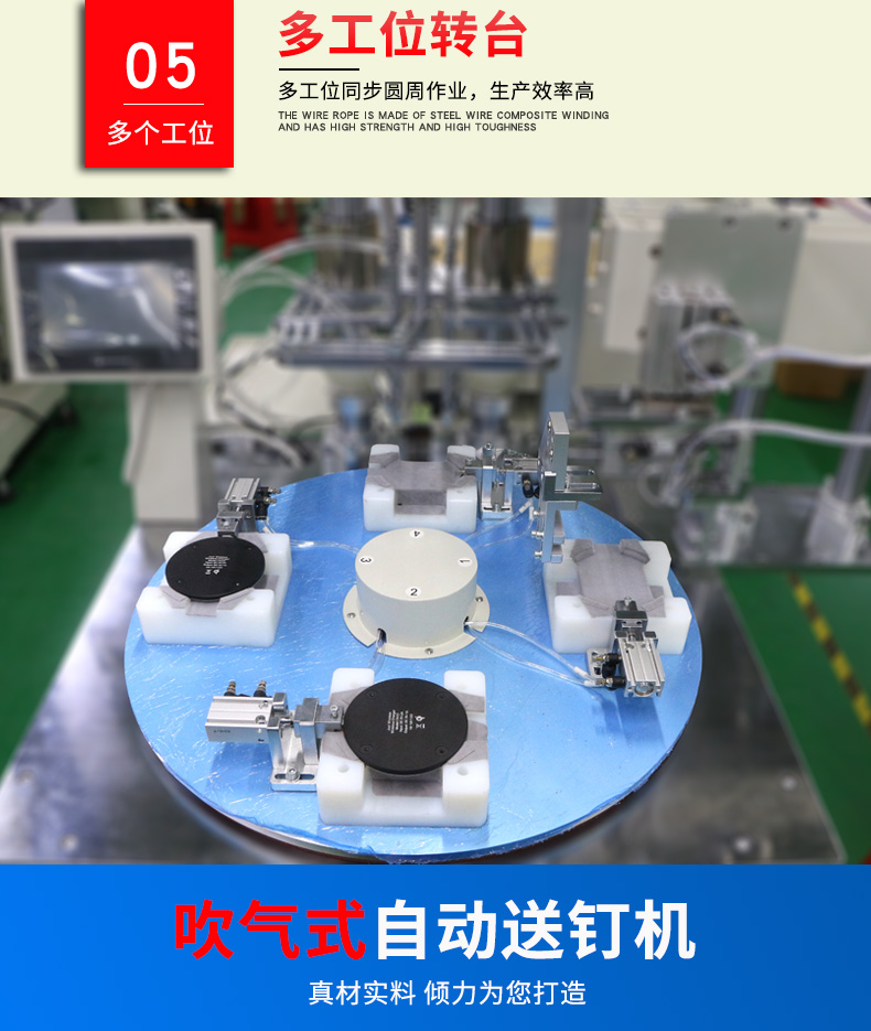 - 產品簡介: 該臺攝像頭自動擰螺絲機,是用來擰攝像頭上面和側面的螺絲。另外根據客戶要求,我們這邊同時搭配了機械臂,通過機械臂將產品轉移至流水線上,方便客戶節省時間,提高客戶生產產能。