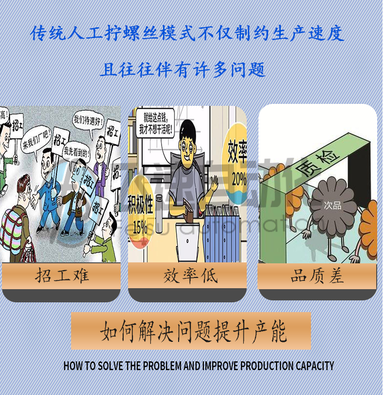 - 產品簡介: 把手作為一種機械配件,使用范圍很廣,所以生產廠家很多,但是由于金屬把手需要使用打螺絲來緊固,人工打螺絲會造成產品出現次品,所以該客戶向我司購買了這臺自動打螺絲機,解決了產品的質量問題。